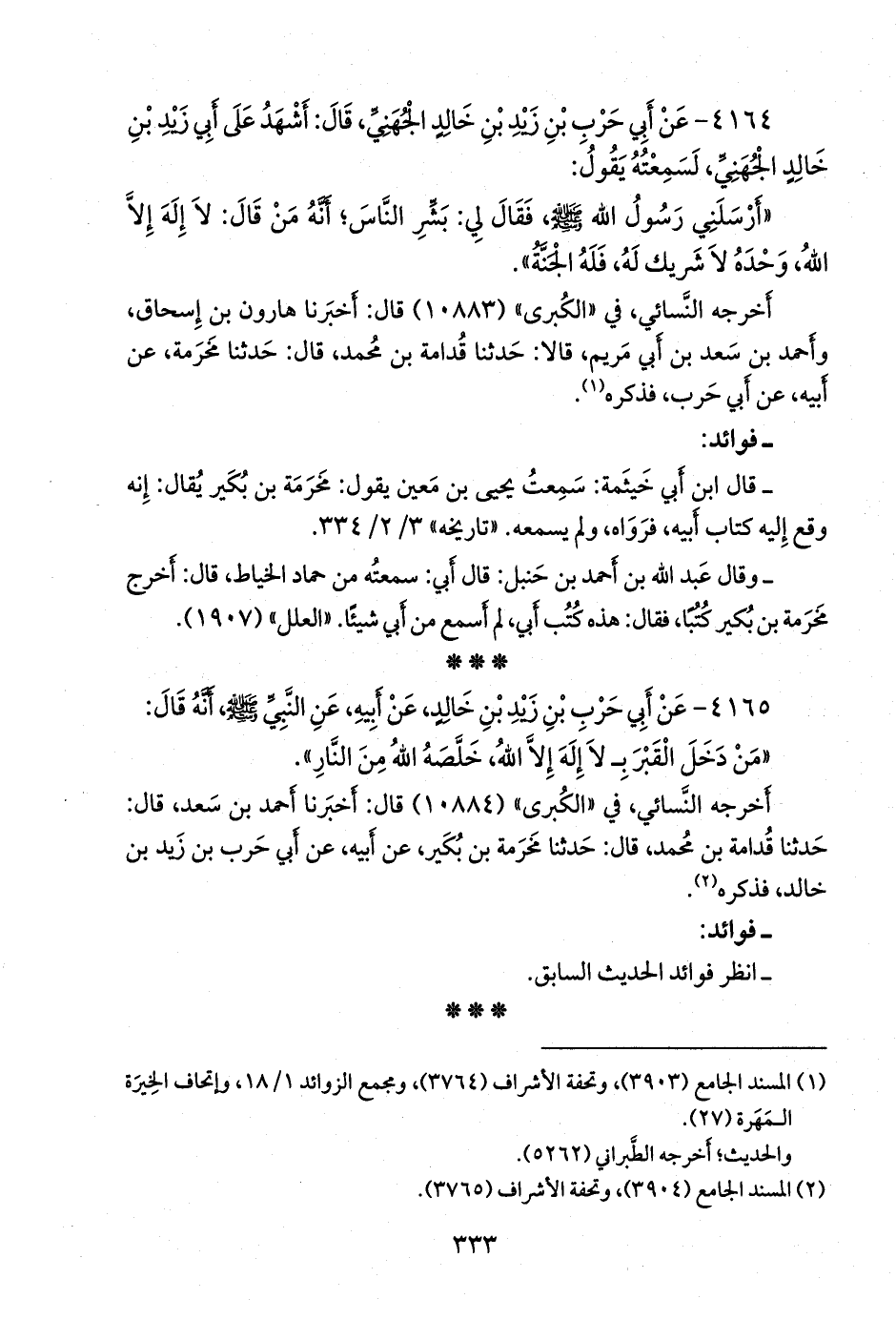 ٤١٦٥ - عن أبي حرب بن زيد بن خالد، عن أبيه، عن النبي صَلى الله عَليه وسَلم أنه قال: