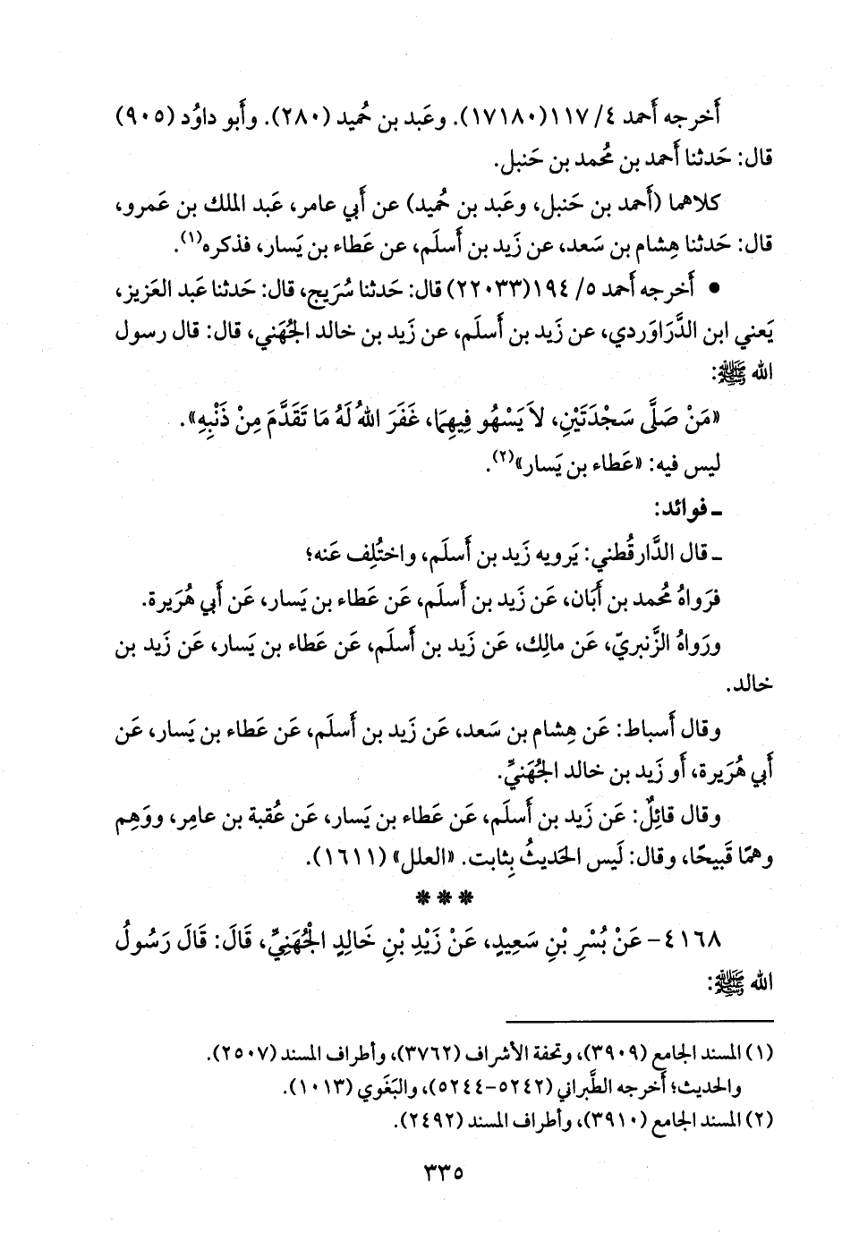 ثلاثتهم (إسماعيل بن إبراهيم ابن عُلَية، وأخوه رِبعي، وبشر) عن عبد الرَّحمَن بن إسحاق المدني، عن محمد بن عبد الله بن عَمرو بن هشام، عن بُسر بن سعيد، فذكره (¬٢).