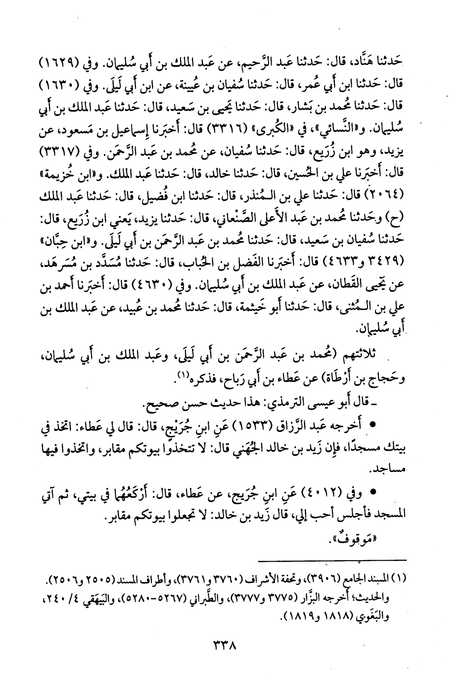 - وفي (٤٠١٢) عن ابن جُريج، عن عطاء، قال: أركعهما في بيتي، ثم آتي المسجد فأجلس أحب إلي، قال زيد بن خالد: لا تجعلوا بيوتكم مقابر.
