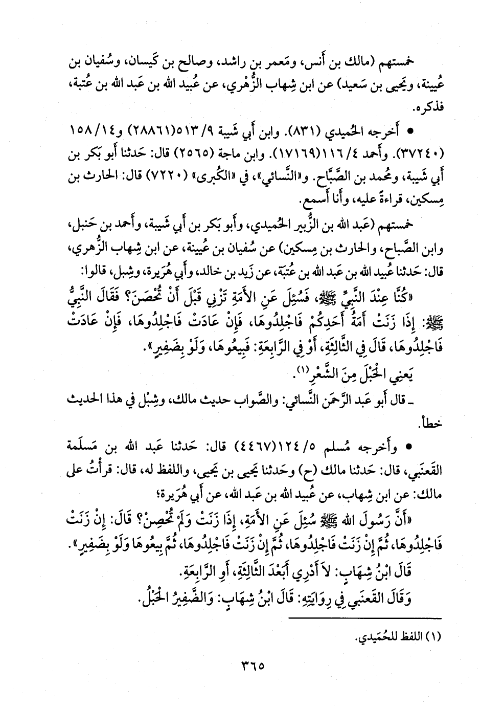 «أن رسول الله صَلى الله عَليه وسَلم سُئِل عن الأمة، إذا زنت ولم تحصن؟ قال: إن زنت فاجلدوها، ثم إن زنت فاجلدوها، ثم إن زنت فاجلدوها، ثم بيعوها ولو بضفير».