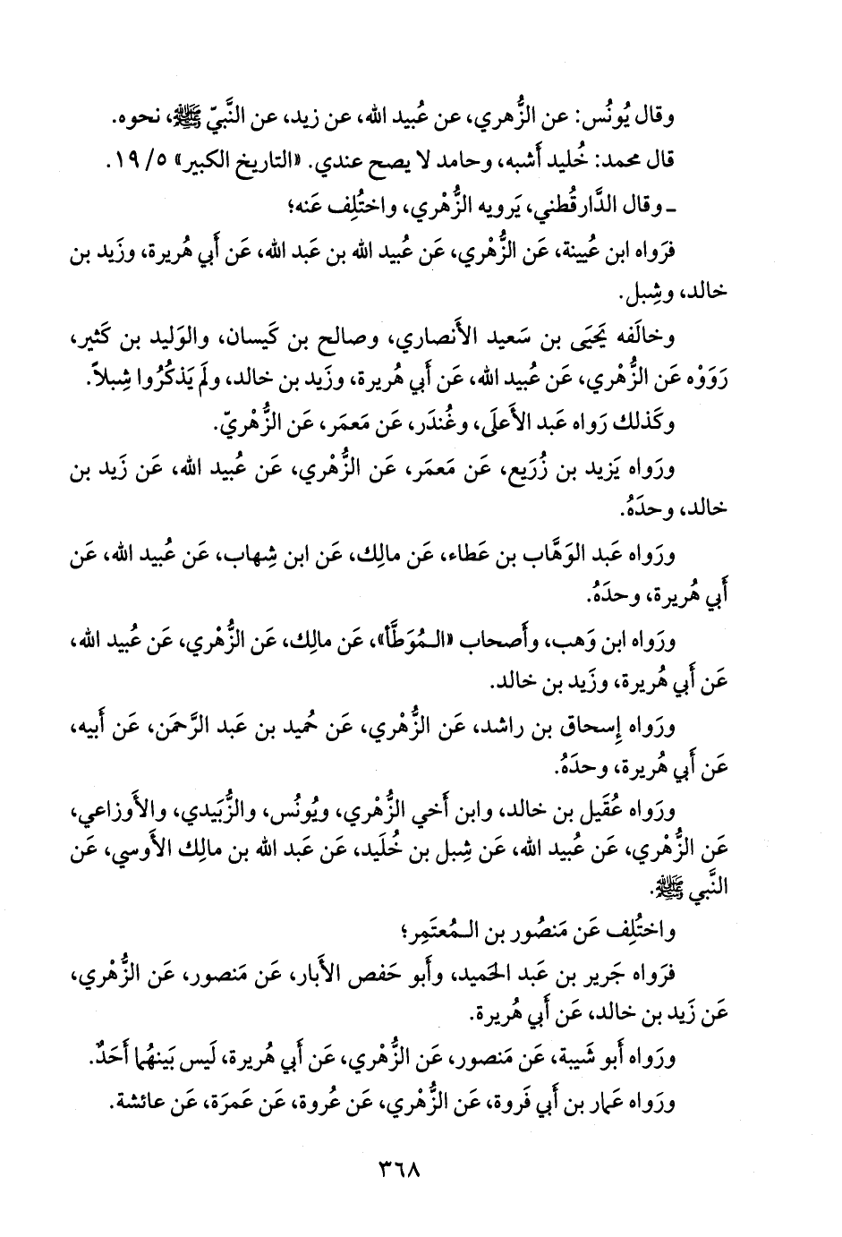 وخالفه يحيى بن سعيد الأَنصاري، وصالح بن كيسان، والوليد بن كثير، رووه عن الزُّهْري، عن عبيد الله، عن أبي هريرة، وزيد بن خالد، ولم يذكروا شبلا.