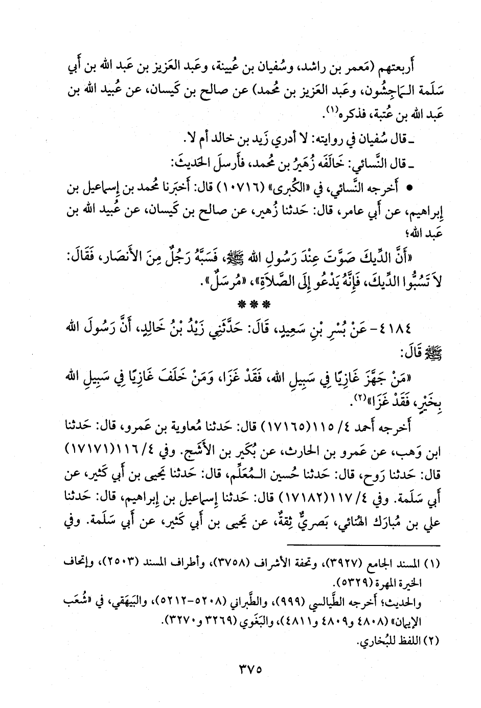 ٤١٨٤ - عن بُسر بن سعيد، قال: حدثني زيد بن خالد، أن رسول الله صَلى الله عَليه وسَلم قال: