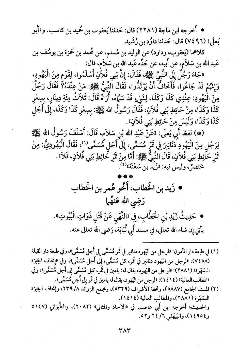 - لفظ أبي يَعلى: «عن عبد الله بن سلام، قال: أسلف رسول الله صَلى الله عَليه وسَلم لرجل من اليهود دنانير في تمر مسمى، إلى أجل مسمى (¬١)، فقال اليهودي: من تمر حائط بني فلان، قال النبي صَلى الله عَليه وسَلم: أما من تمر حائط بني فلان، فلا».