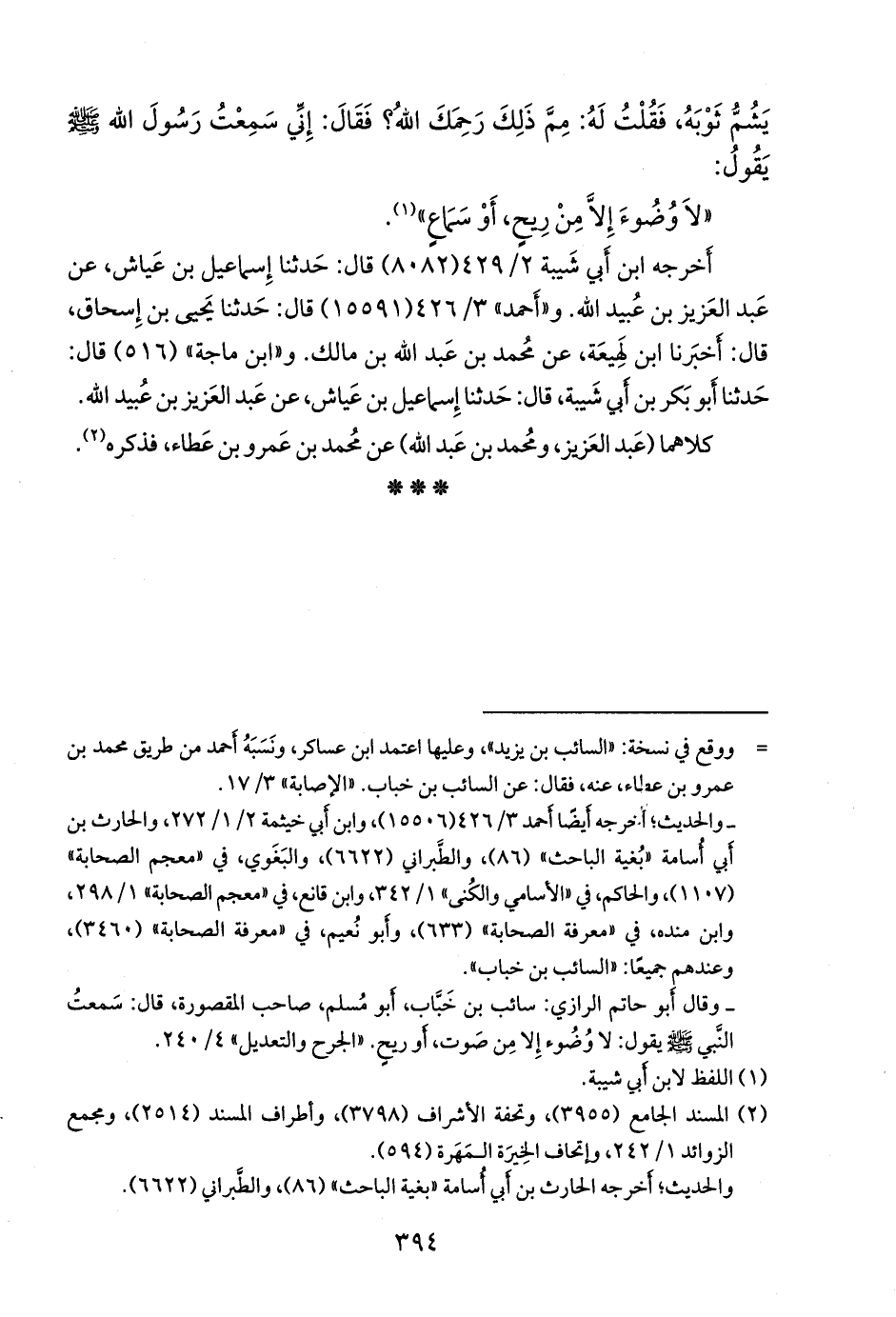 (¬١) المسند الجامع (٣٩٥٥)، وتحفة الأشراف (٣٧٩٨)، وأطراف المسند (٢٥١٤)، ومَجمَع الزوائد ١/ ٢٤٢، وإتحاف الخِيرَة المَهَرة (٥٩٤).
