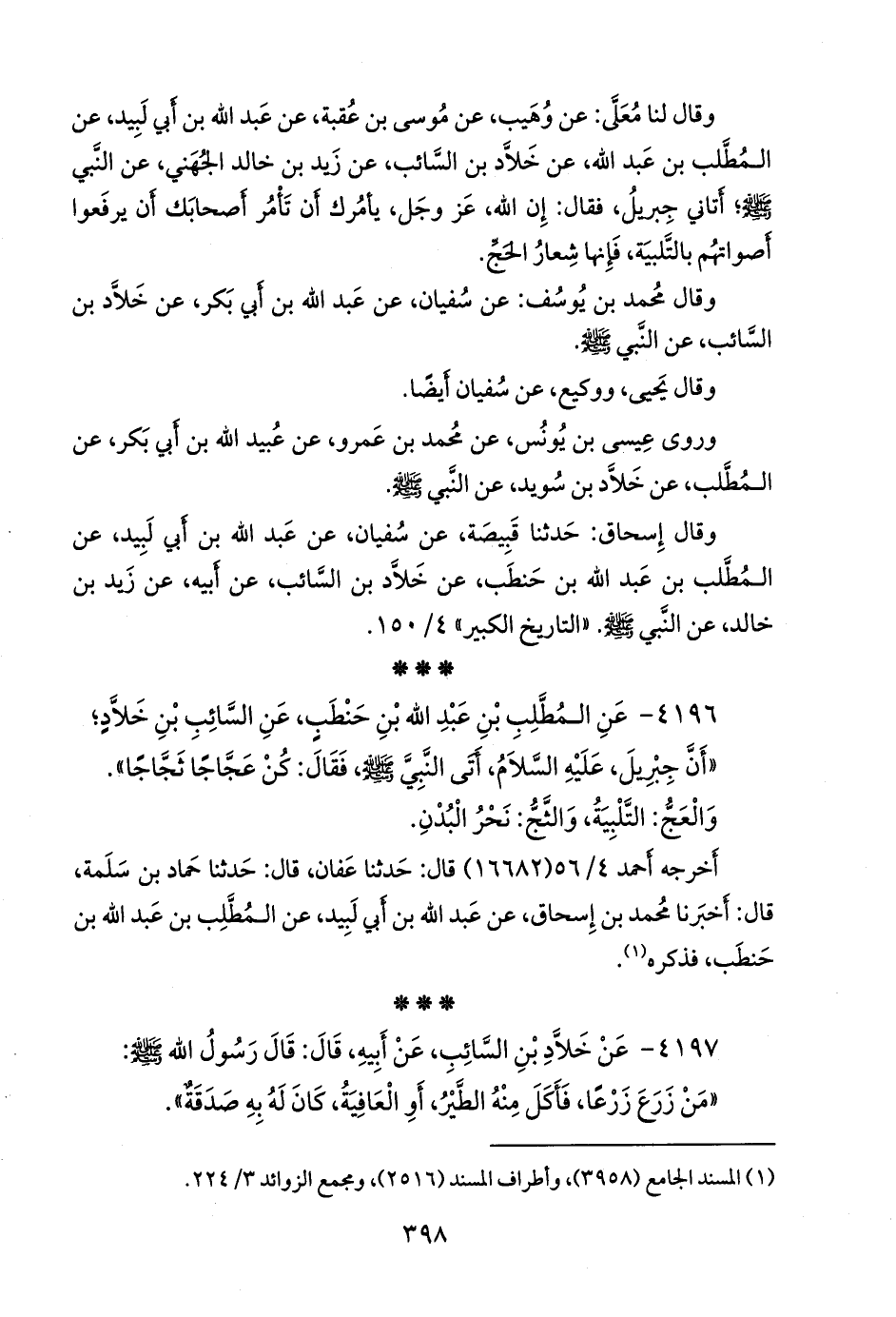٤١٩٦ - عن المطلب بن عبد الله بن حنطب، عن السائب بن خلاد؛