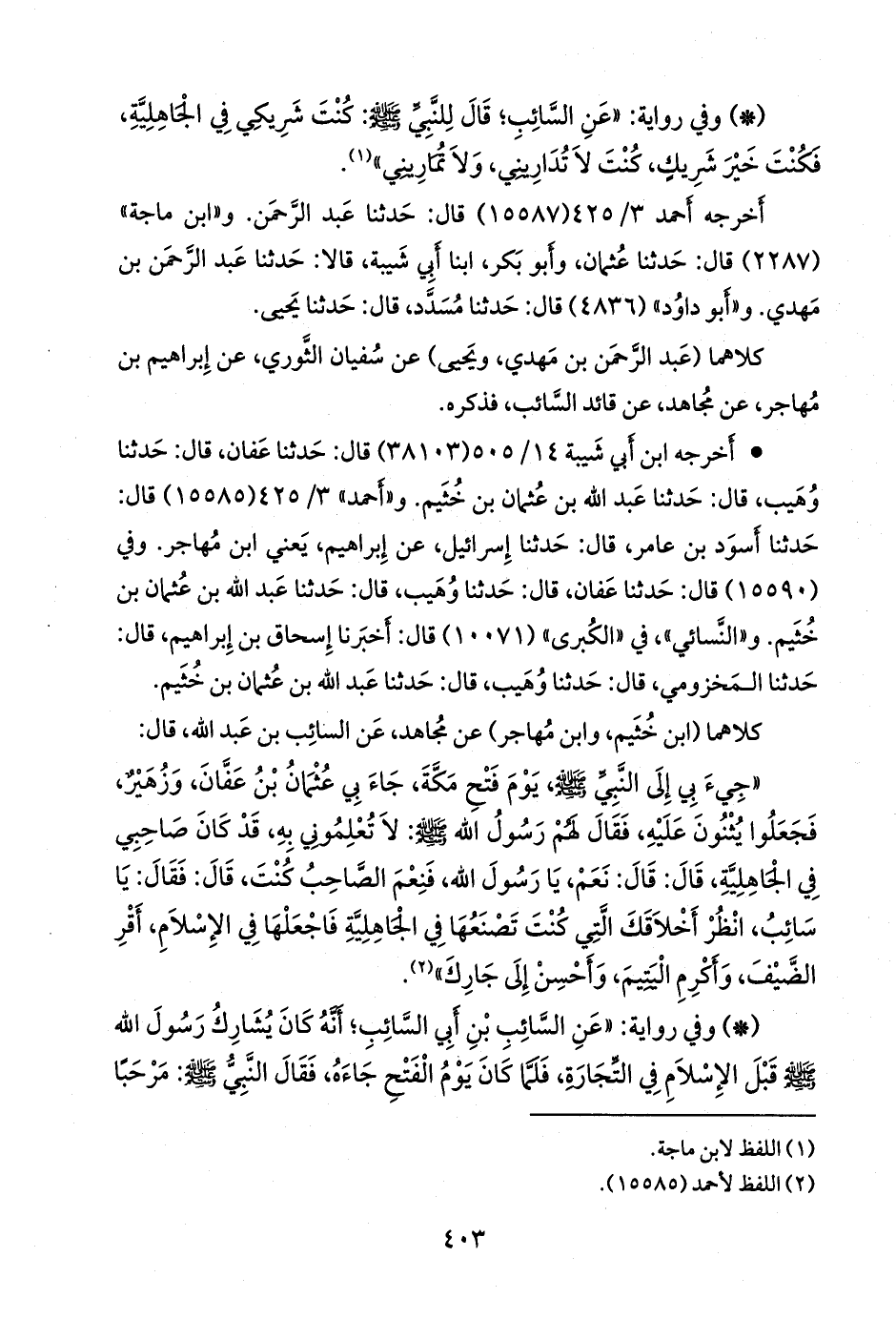 كلاهما (ابن خثيم، وابن مهاجر) عن مجاهد، عن السائب بن عبد الله، قال:
