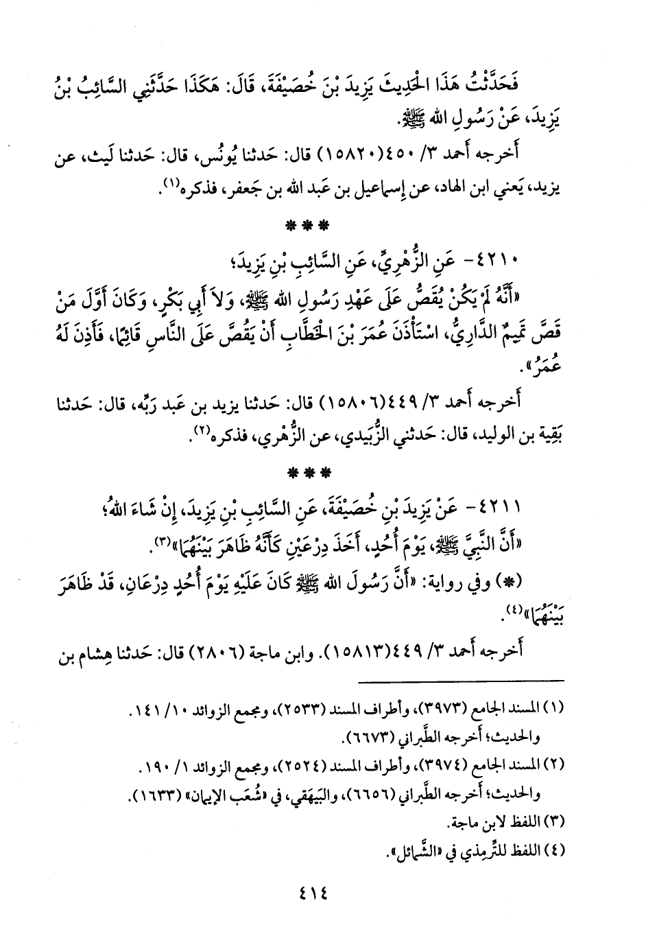 ٤٢١٠ - عن محمد بن مسلم بن شهاب الزُّهْري، عن السائب بن يزيد؛