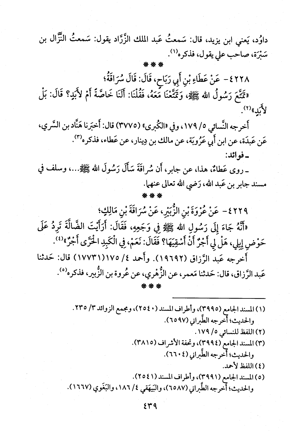 ٤٢٢٨ - عن عطاء بن أبي رباح، قال: قال سراقة؛