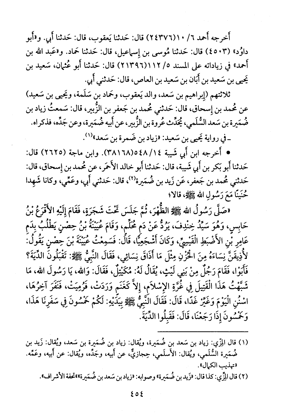 (¬١) قال المِزِّي: زياد بن سعد بن ضميرة، ويقال: زياد بن ضميرة بن سعد، ويقال: زيد بن ضميرة السلمي، ويقال: الأسلمي، حجازي، عن أبيه، وجده، ويقال: عن أبيه، وعمه. «تهذيب الكمال».
