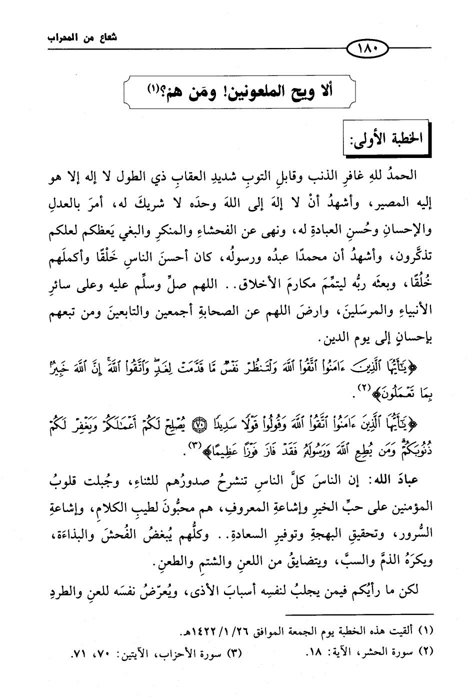 (¬1) ألقيت هذه الخطبة يوم الجمعة الموافق 26/ 1/ 1422 هـ.