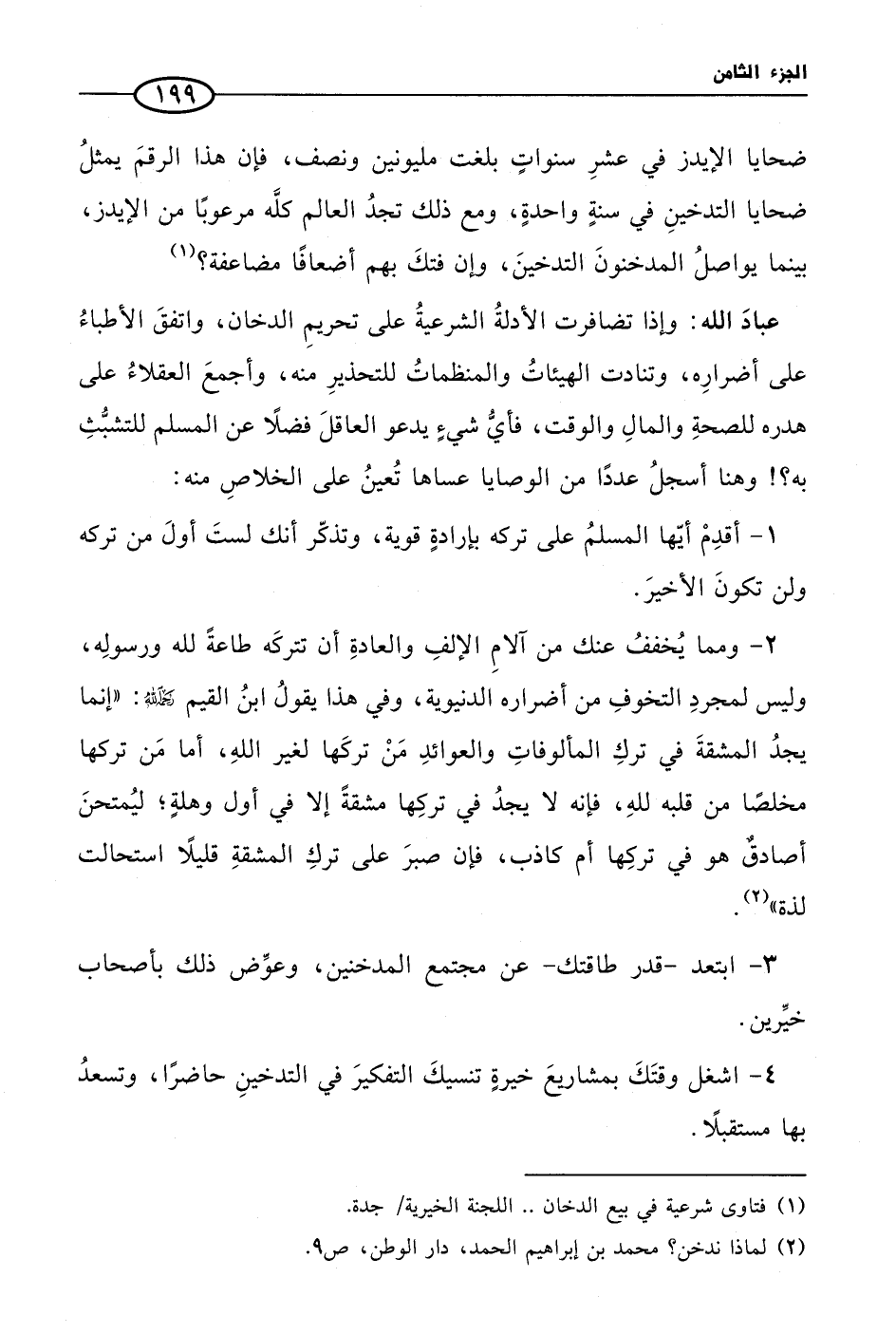 (¬2) لماذا ندخن؟ محمد بن إبراهيم الحمد، دار الوطن، ص 9.