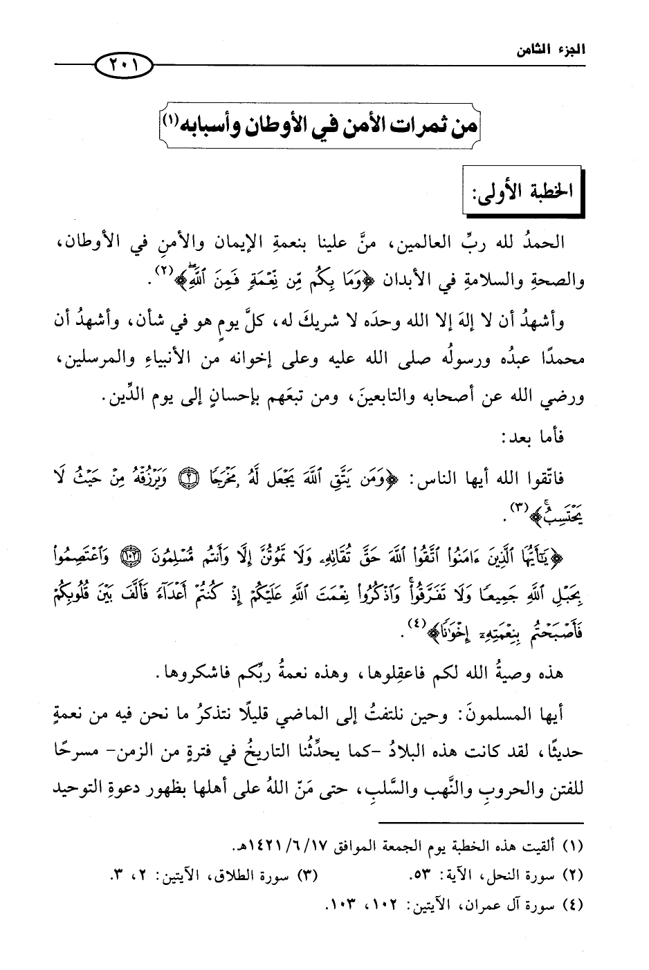 (¬1) ألقيت هذه الخطبة يوم الجمعة الموافق 17/ 6/ 1421 هـ.