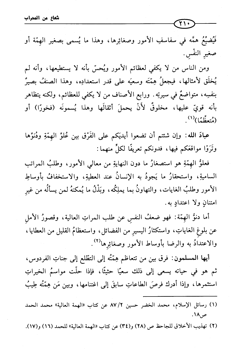 (¬1) رسائل الإسلام، محمد الخضر حسين 2/ 87 عن كتاب «الهمة العالية» محمد الحمد ص 18.