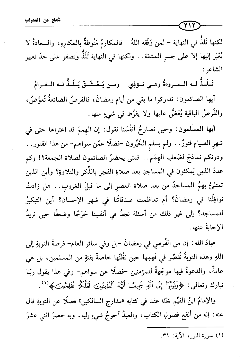 (¬1) سورة النور، الآية: 31.