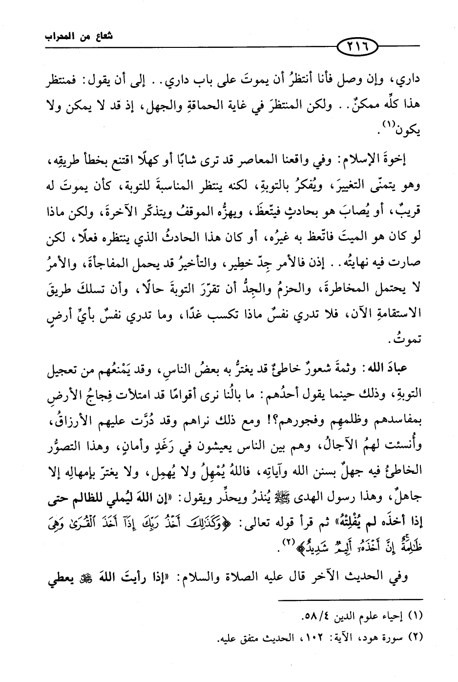 (¬2) سورة هود، الآية: 102، الحديث متفق عليه.