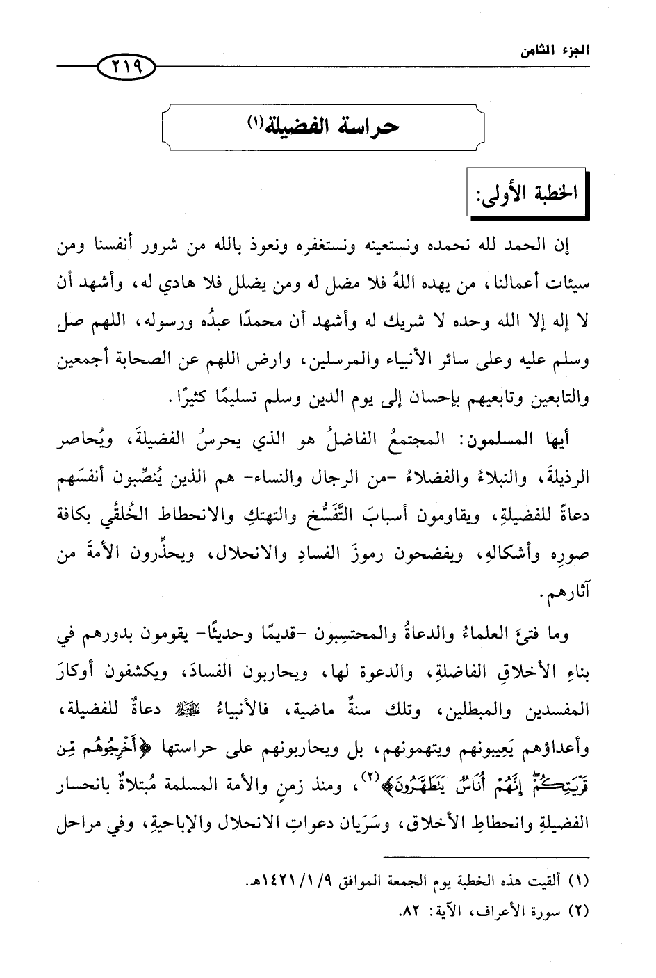 (¬1) ألقيت هذه الخطبة يوم الجمعة الموافق 9/ 1/ 1421 هـ.