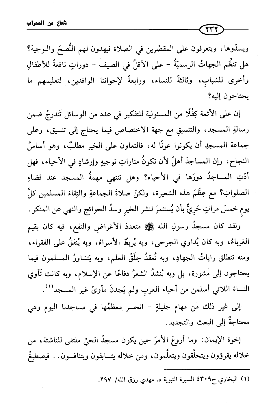 إلى غير ذلك من مهام جليلةٍ - انحسر معظمُها في مساجدنا اليوم وهي محتاجةٌ إلى البعث والتجديد.