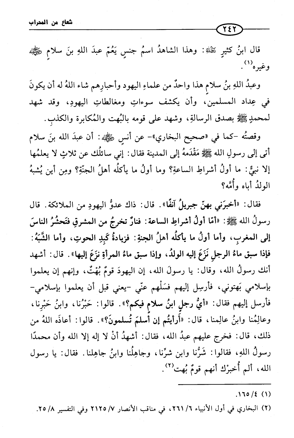وعبدُ اللهِ بنُ سلامٍ هذا واحدٌ من علماءِ اليهود وأحبارِهم شاء اللهُ له أن يكونَ في عِداد المسلمين، وأن يكشف سوءاتِ ومغالطاتِ اليهودِ، وقد شهد لمحمدٍ صلى الله عليه وسلم بصدق الرسالةِ، وشهد على قومه بالبُهت والمُكابرة والكذبِ.