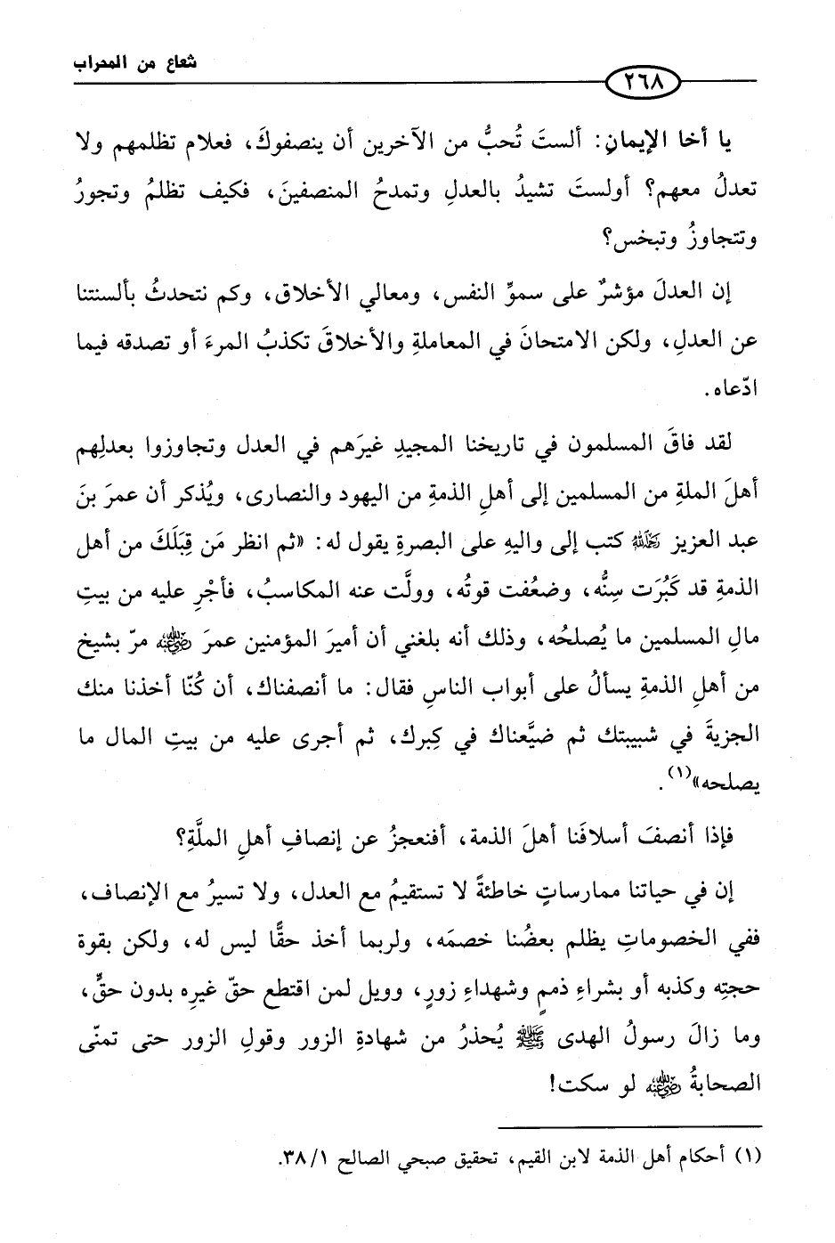 فإذا أنصفَ أسلافَنا أهلَ الذمة، أفنعجزُ عن إنصافِ أهلِ الملَّةِ؟