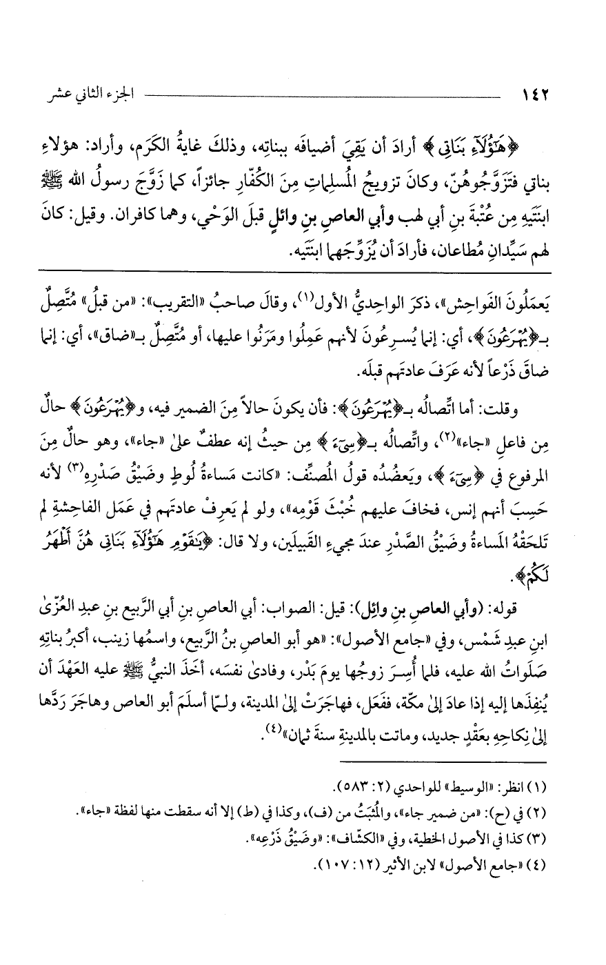 (هؤُلاءِ بَناتِي) أراد أن يقي أضيافه ببناته، وذلك غاية الكرم، وأراد: هؤلاء بناتي فتزوّجوهنّ وكان تزويج المسلمات من الكفار جائزاً، كما زوّج رسول الله صلى الله عليه وسلم ابنتيه من عتبة بن أبي لهب وأبي العاص بن وائل قبل الوحى وهما كافران وقيل كان لهم سيدان مطاعان، فأراد أن يزوجهما ابنتيه.