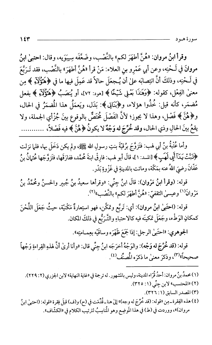 قوله: (وقرأ ابن مروان): قال ابن جني: "وقرأها سعيد بن جبير والحسن ومحمد بن مروان وعيسى الثقفي: "هن أطهر لكم" بالنصب".