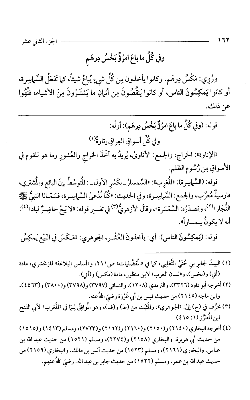 وروي: مكس درهم، وكانوا يأخذون من كل شيء يباع شيئاً، كما تفعل السماسرة. أو كانوا يمكسون الناس. أو كانوا ينقصون من أثمان ما يشترون من الأشياء، فنهوا عن ذلك.