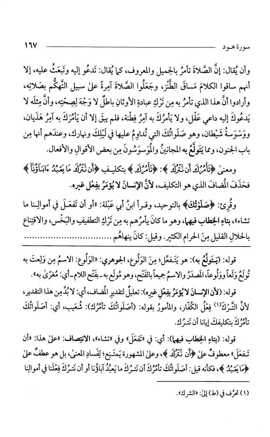 ومعنى (تأمرك أَنْ نَتْرُكَ): (تأمرك) بتكليف (أن نترك ما يَعْبُدُ آباؤُنا) لحذف المضاف الذي هو التكليف، لأنّ الإنسان لا يؤمر بفعل غيره.