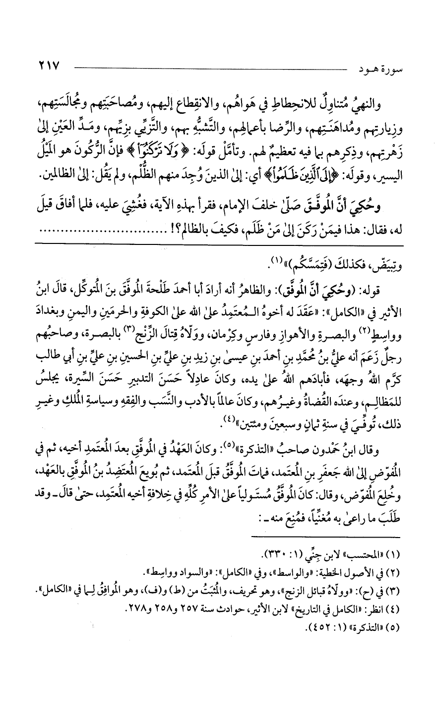 وحُكي أنّ الموفق صلى خلف الإمام فقرأ بهذه الآية فغشي عليه، فلما أفاق قيل له، فقال: هذا فيمن ركن إلى من ظلم، فكيف بالظالم؟ !