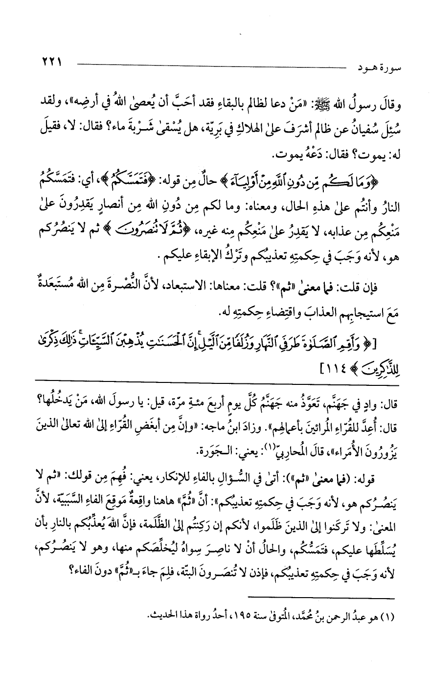 قال: واد في جهنم، تعوذ منه جهنم كل يوم أربع مئة مرة، قيل: يا رسول الله، من يدخلها؟ قال: أعد للقراء المرائين بأعمالهم". وزاد ابن ماجة: "وإن من أبغض القراء إلى الله تعالى الذين يزولون الأمراء"، قال المحاربي: يعني: الجورة.