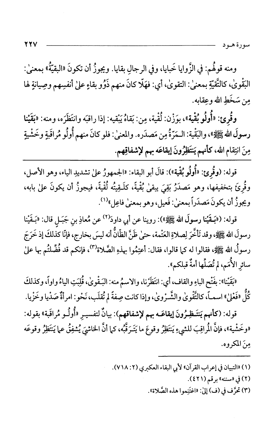 قوله: (وقرئ: "أولو بقية"): قال أبو البقاء: "الجمهور على تشديد الياء، وهو الأصل، وقرئ بتخفيفها، وهو مصدر بقي يبقى بقية، كلقيته لقية، فيجوز أن يكون على بابه، ويجوز أن يكون مصدراً بمعنى: فعيل، وهو بمعنى فاعل".