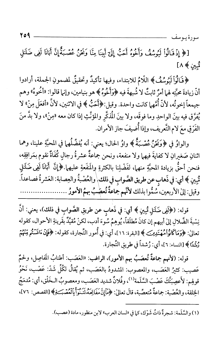 [(إِذْ قالُوا لَيُوسُفُ وَأَخُوهُ أَحَبُّ إِلى أَبِينا مِنَّا وَنَحْنُ عُصْبَةٌ إِنَّ أَبانا لَفِي ضَلالٍ مُبِينٍ)].