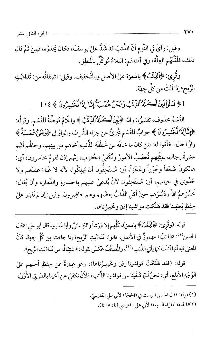 [(قالُوا لَئِنْ أَكَلَهُ الذِّئْبُ وَنَحْنُ عُصْبَةٌ إِنَّا إِذاً لَخاسِرُونَ)].