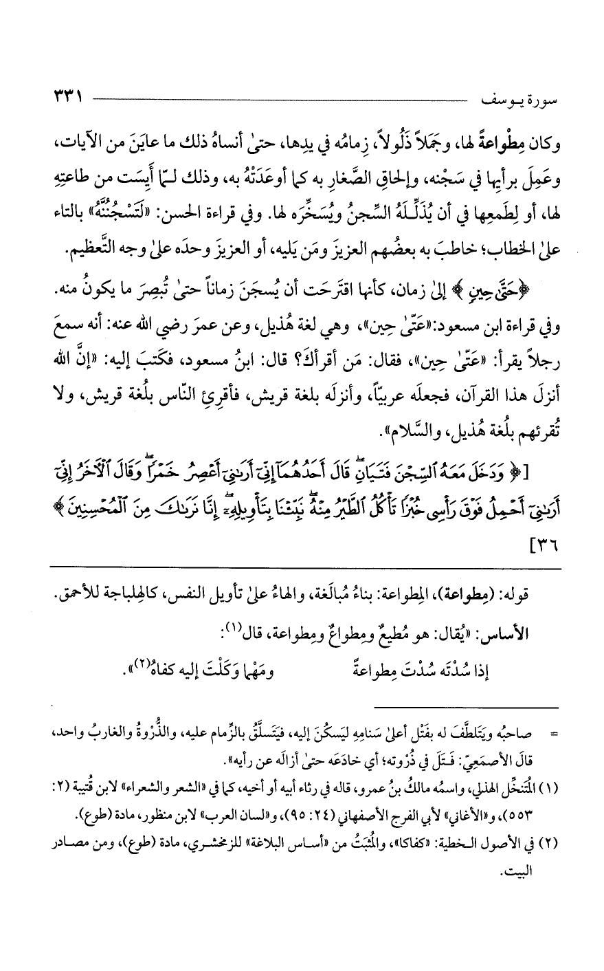 (حَتَّى حِينٍ) إلى زمان، كأنها اقترحت أن يسجن زماناً حتى تبصر ما يكون منه. وفي قراءة ابن مسعود: "عتى حين"، وهي لغة هذيل. وعن عمر رضي الله عنه: أنه سمع رجلاً يقرأ «عتى حين» فقال: من أقرأك؟ قال: