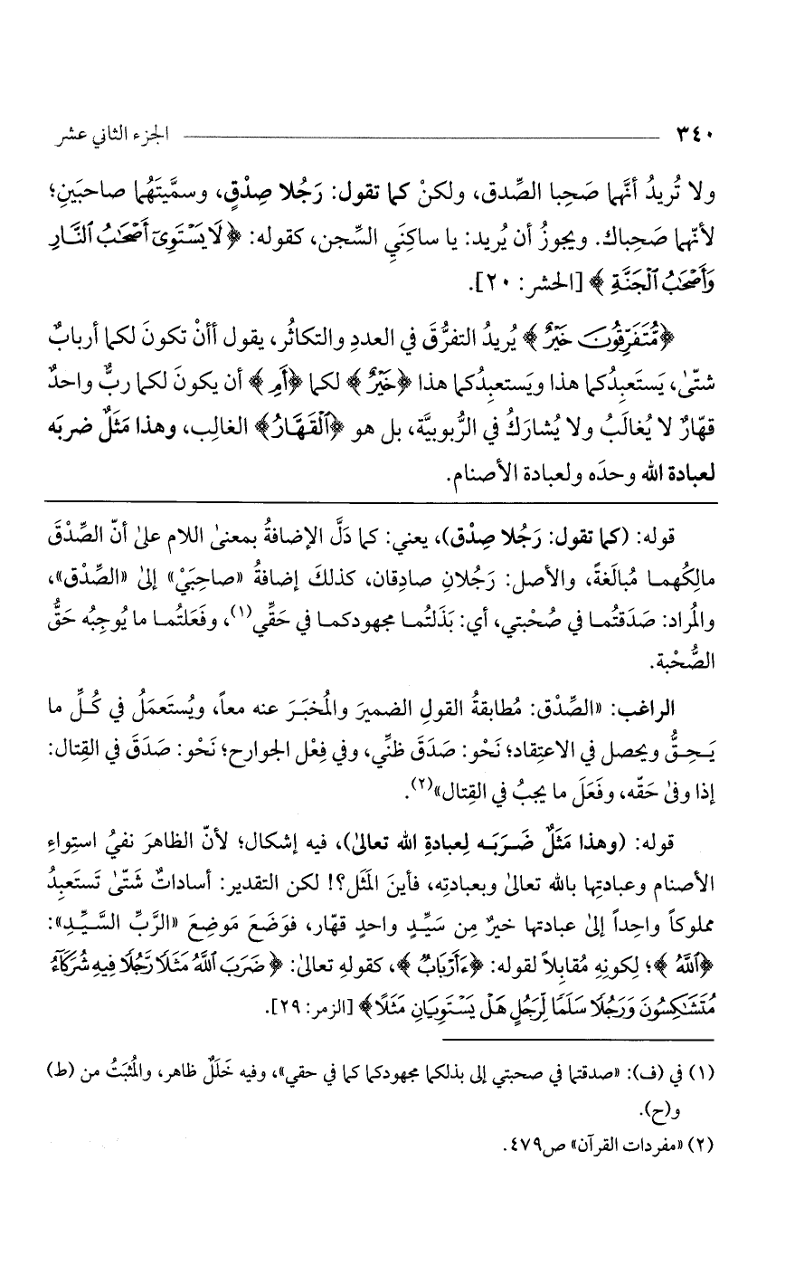 ولا تريد أنهما صحبا الصدق، ولكن كما تقول: رجلاً صدق، وسميتهما صاحبين لأنهما صحباك. ويجوز أن يريد: يا ساكني السجن، كقوله: (أَصْحابُ النَّارِ وَأَصْحابُ الْجَنَّةِ) [الحشر: 20].