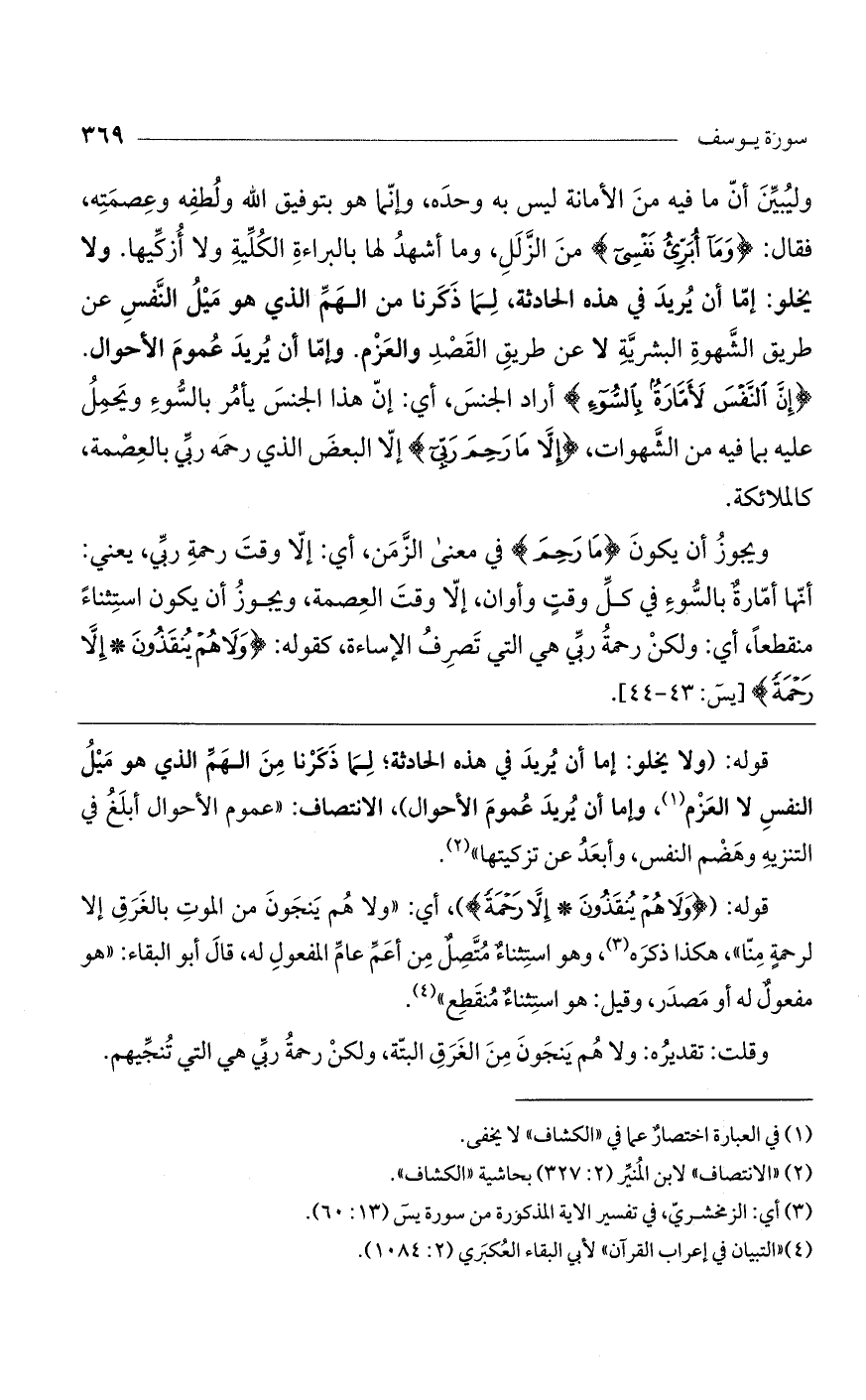 قوله: (ولا يخلو: إما أن يريد في هذه الحادثة؛ لما ذكرنا من الهم الذي هو ميل النفس لا العزم، وإما أن يريد عموم الأحوال)، الانتصاف: "عموم الأحوال أبلغ في التنزيه وهضم النفس، وابعد عن تزكيتها".