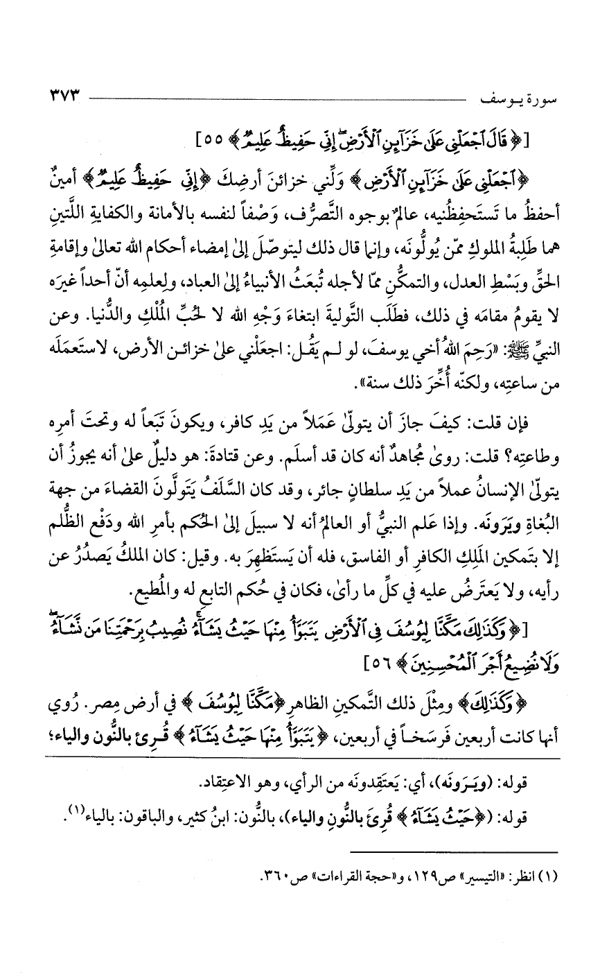 [(وَكَذلِكَ مَكَّنَّا لِيُوسُفَ فِي الْأَرْضِ يَتَبَوَّأُ مِنْها حَيْثُ يَشاءُ نُصِيبُ بِرَحْمَتِنا مَنْ نَشاءُ وَلا نُضِيعُ أَجْرَ الْمُحْسِنِينَ)].