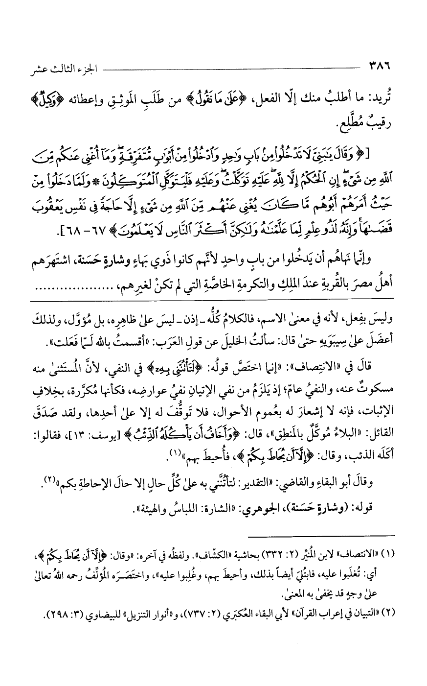 وإنما نهاهم أن يدخلوا من باب واحد، لأنهم كانوا ذوى بهاء وشارةٍ حسنة، اشتهرهم أهل مصر بالقربة عند الملك والتكرمة الخاصة التي لم تكن لغيرهم،
