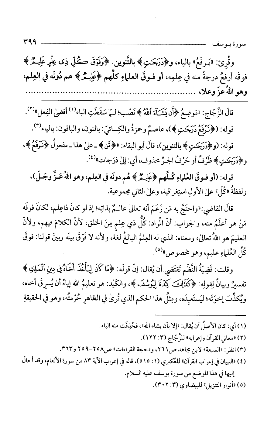 قوله: ((نَرْفَعُ دَرَجَاتٍ))، عاصم وحمزة والكسائي: بالنون، والباقون: بالياء.