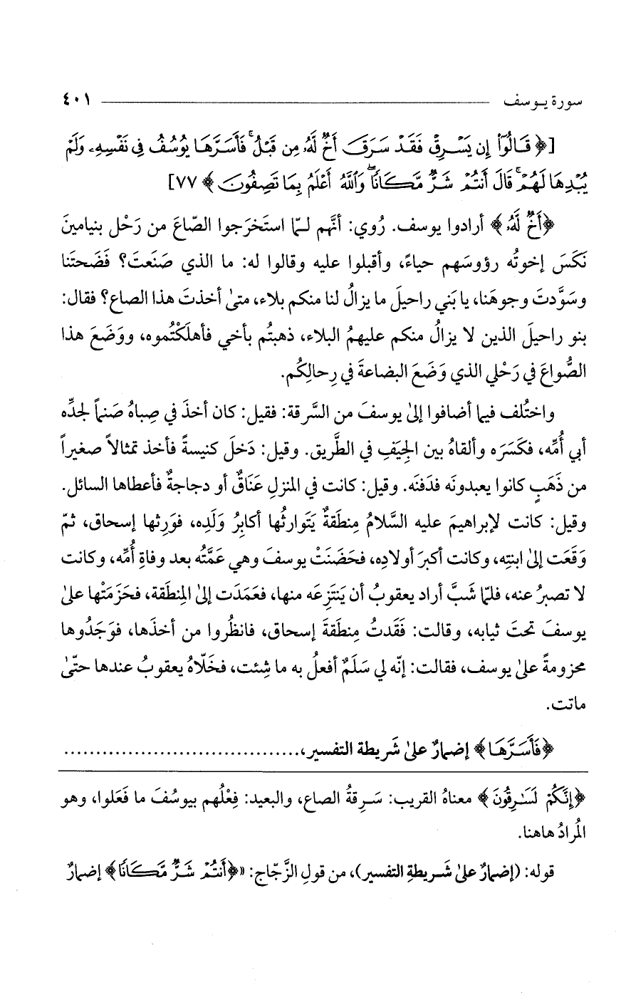 [(قالُوا إِنْ يَسْرِقْ فَقَدْ سَرَقَ أَخٌ لَهُ مِنْ قَبْلُ فَأَسَرَّها يُوسُفُ فِي نَفْسِهِ وَلَمْ يُبْدِها لَهُمْ قالَ أَنْتُمْ شَرٌّ مَكاناً وَاللَّهُ أَعْلَمُ بِما تَصِفُونَ)].