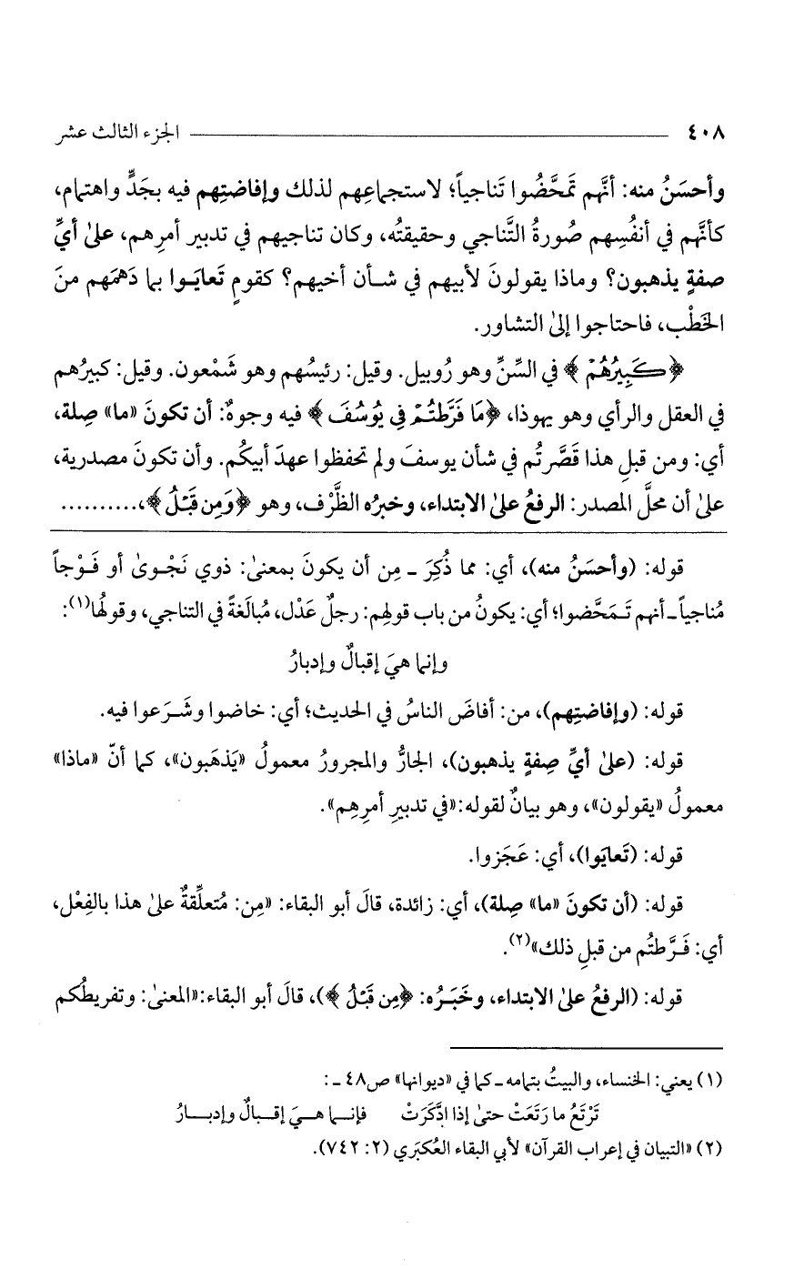 قوله: (الرفع على الابتداء، وخبره: (مِن قَبْلُ))، قال أبو البقاء: "المعنى: وتفريطكم