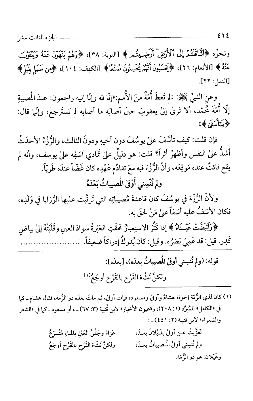 وعن النبي صلى الله عليه وسلم: «لم تعط أمة من الأمم: "إنا لله وإنا إليه راجعون" عند المصيبة إلا أمّة محمد صلى الله عليه وسلم. ألا ترى إلى يعقوب حين أصابه ما أصابه لم يسترجع. وإنما قال: "يا أسفى".