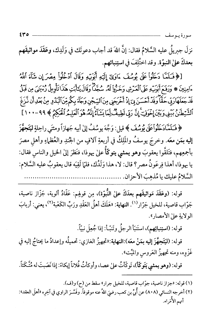 [(فَلَمَّا دَخَلُوا عَلى يُوسُفَ آوى إِلَيْهِ أَبَوَيْهِ وَقالَ ادْخُلُوا مِصْرَ إِنْ شاءَ اللَّهُ آمِنِينَ* وَرَفَعَ أَبَوَيْهِ عَلَى الْعَرْشِ وَخَرُّوا لَهُ سُجَّداً وَقالَ يا أَبَتِ هذا تَاوِيلُ رُءْيايَ مِنْ قَبْلُ قَدْ جَعَلَها رَبِّي حَقًّا وَقَدْ أَحْسَنَ بِي إِذْ أَخْرَجَنِي مِنَ السِّجْنِ وَجاءَ بِكُمْ مِنَ الْبَدْوِ مِنْ بَعْدِ أَنْ نَزَغَ الشَّيْطانُ بَيْنِي وَبَيْنَ إِخْوَتِي إِنَّ رَبِّي لَطِيفٌ لِما يَشاءُ إِنَّهُ هُوَ الْعَلِيمُ الْحَكِيمُ)].
