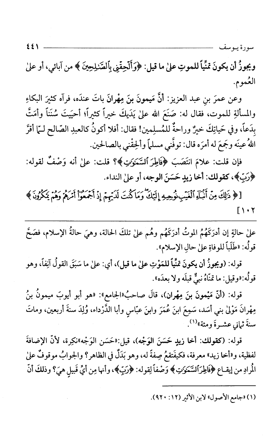 قوله: (أن ميمون بن مهران)، قال صاحب "الجامع": "هو أبو أيوب ميمون بن مهران مولى بني أسد، سمع ابن عمر وابن عباس وأبا الدرداء، ولد سنة أربعين، ومات سنة ثماني عشرة ومئة".