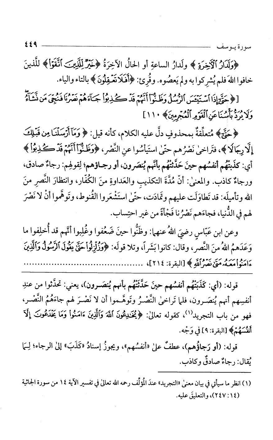 [(حَتَّى إِذَا اسْتَيْأَسَ الرُّسُلُ وَظَنُّوا أَنَّهُمْ قَدْ كُذِبُوا جاءَهُمْ نَصْرُنا فَنُجِّيَ مَنْ نَشاءُ وَلا يُرَدُّ بَاسُنا عَنِ الْقَوْمِ الْمُجْرِمِينَ)].