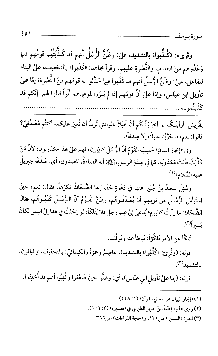 قوله: (وقرئ: "كذبوا" بالتشديد)، عاصم وحمزة والكسائي: بالتخفيف، والباقون: بالتشديد.