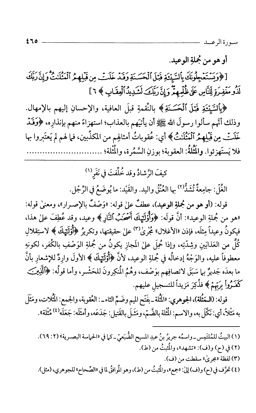 [(وَيَسْتَعْجِلُونَكَ بِالسَّيِّئَةِ قَبْلَ الْحَسَنَةِ وَقَدْ خَلَتْ مِنْ قَبْلِهِمُ الْمَثُلاتُ وَإِنَّ رَبَّكَ لَذُو مَغْفِرَةٍ لِلنَّاسِ عَلى ظُلْمِهِمْ وَإِنَّ رَبَّكَ لَشَدِيدُ الْعِقابِ)].