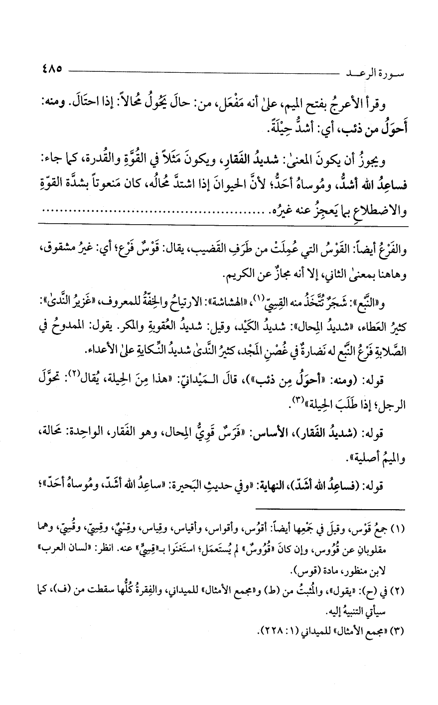ويجوز أن يكون المعنى: شديد الفقار، ويكون مثلاً في القوة والقدرة كما جاء: فساعد الله أشدّ، وموساه أحدّ، لأن الحيوان إذا اشتدّ محاله، كان منعوتاً بشدّة القوّة والاضطلاع بما يعجز عنه غيره