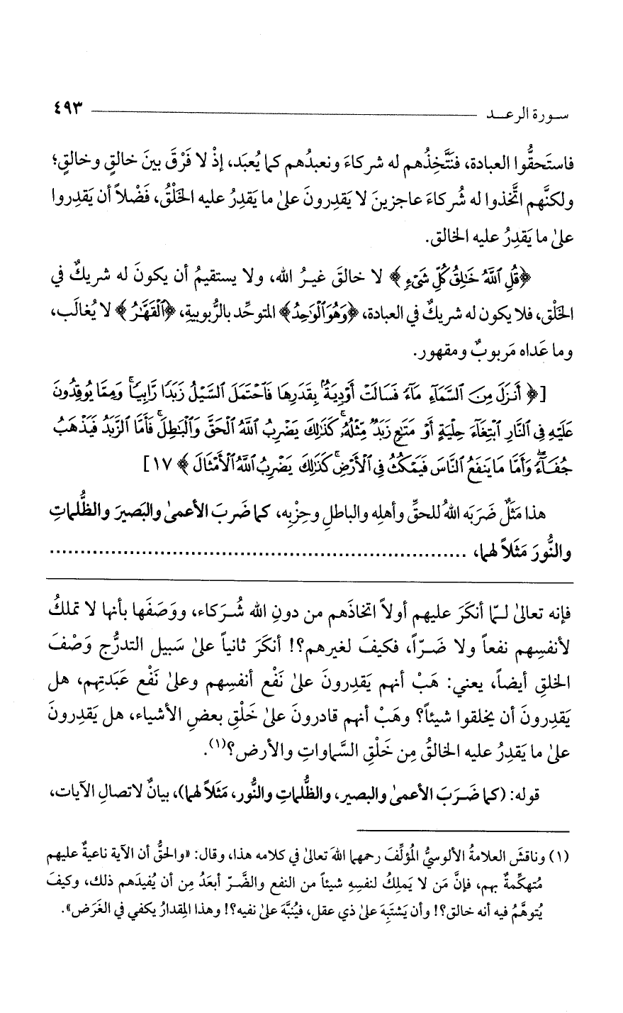 هذا مثل ضربه الله للحق وأهله والباطل وحزبه، كما ضرب الأعمى والبصير والظلمات والنور مثلاً لهما، ......