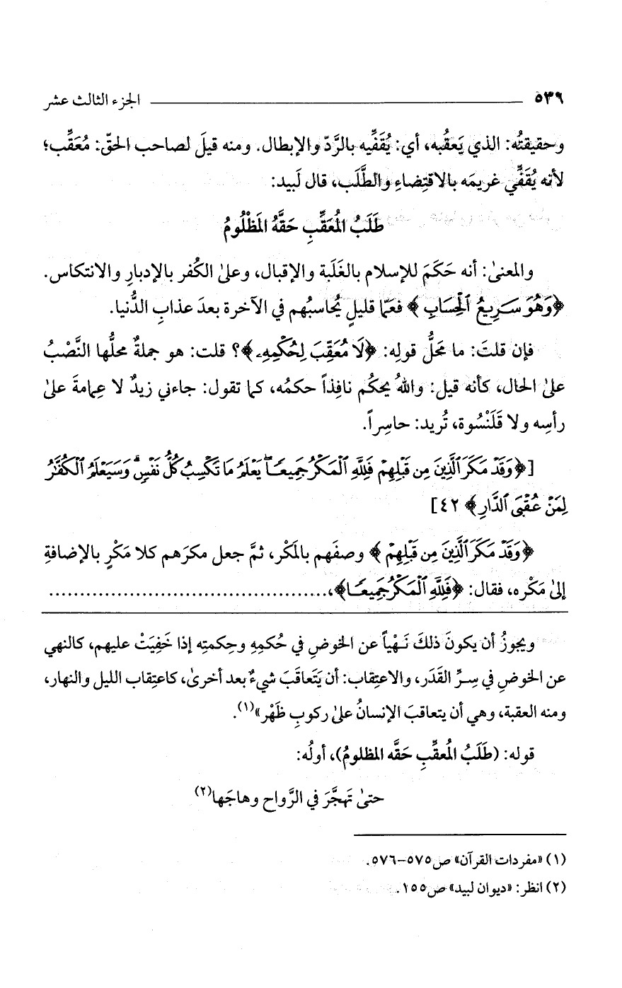(وَقَدْ مَكَرَ الَّذِينَ مِنْ قَبْلِهِمْ) وصفهم بالمكر، ثم جعل مكرهم كلا مكر بالإضافة إلى مكره فقال: (فَلِلَّهِ الْمَكْرُ جَمِيعاً)،