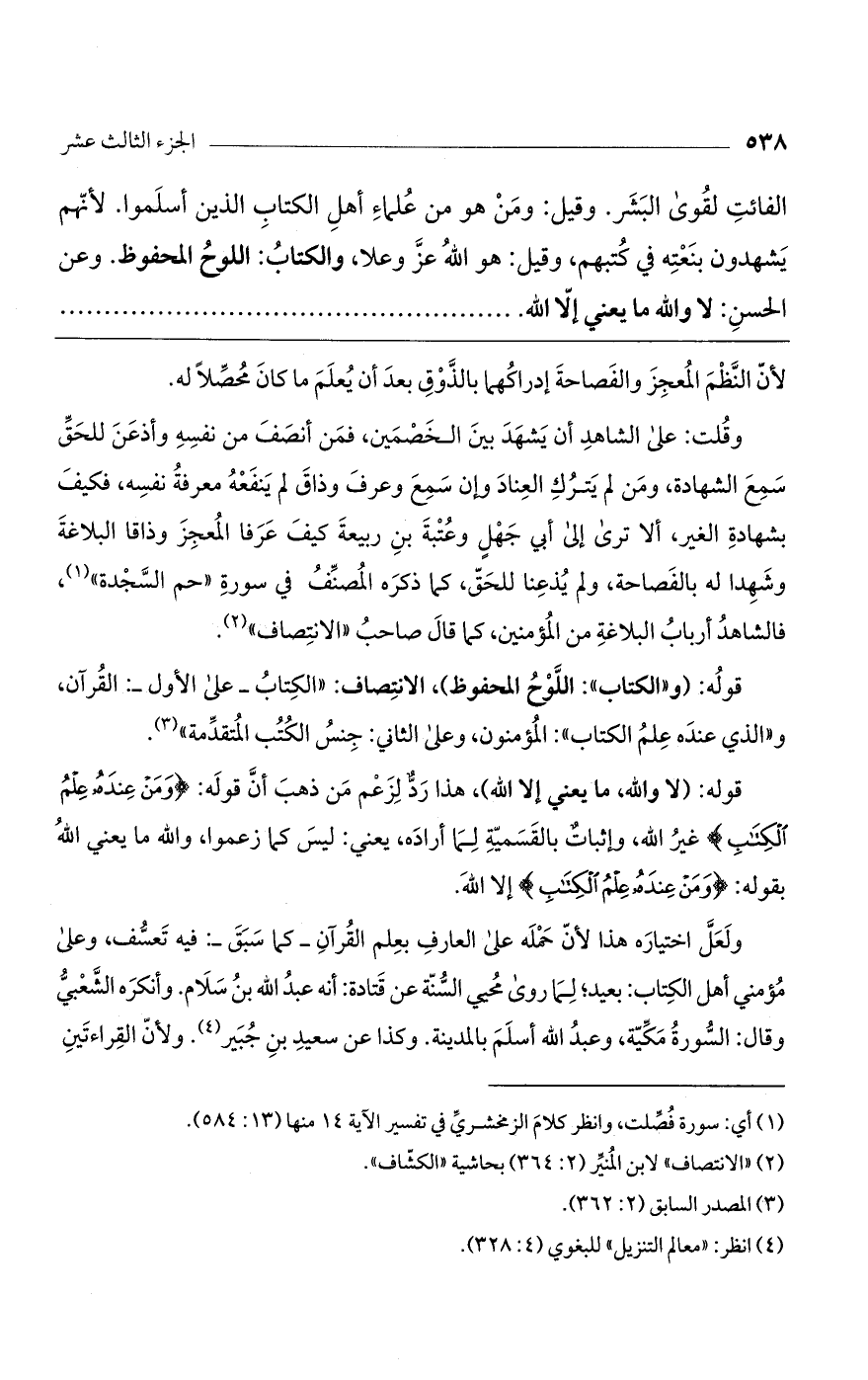 قوله: (و"الكتاب": اللوح المحفوظ)، الانتصاف: "الكتاب- على الأول-: القرآن، و"الذي عنده علم الكتاب": المؤمنون، وعلى الثاني: جنس الكتب المتقدمة".